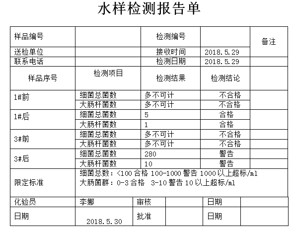 为了验证水线臭氧处理的效果进行了多次实验 ,从检测结果可以看出,水线臭氧清洗消毒后水线内药物残留量显著减少,可降低67%;在养殖过程中水线处理比不处理水线内药物残留量可降低83%,显著降低药残风险。水线臭氧消清洗毒后,通过对水线内水的微生物检测,完全达到鸡只饮水标准 。